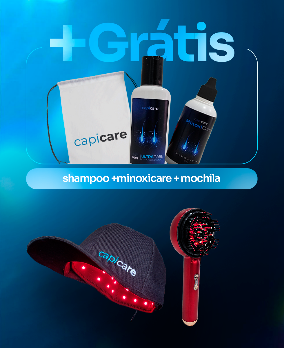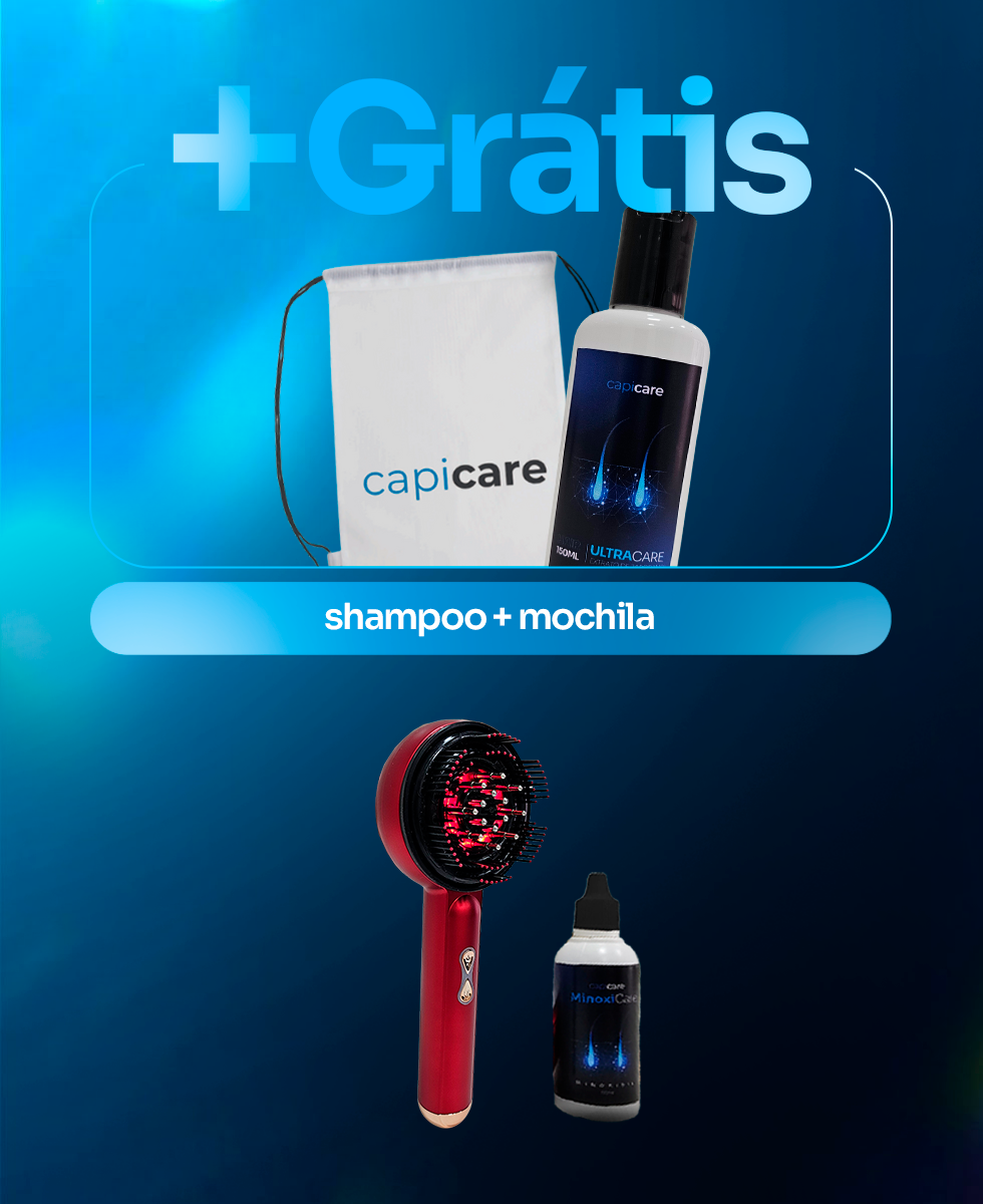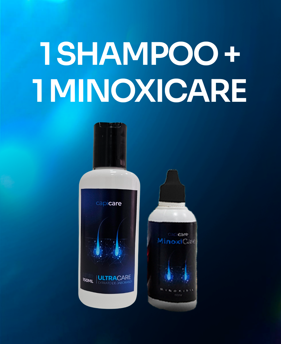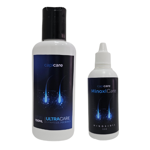 O UltraCare é um shampoo estimulante com extrato de jaborandi, que limpa profundamente e prepara o couro cabeludo para absorver melhor os nutrientes. Já o MinoxiCare, à base de Minoxidil, atua diretamente nos folículos, prolongando a fase de crescimento dos fios e acelerando os resultados.