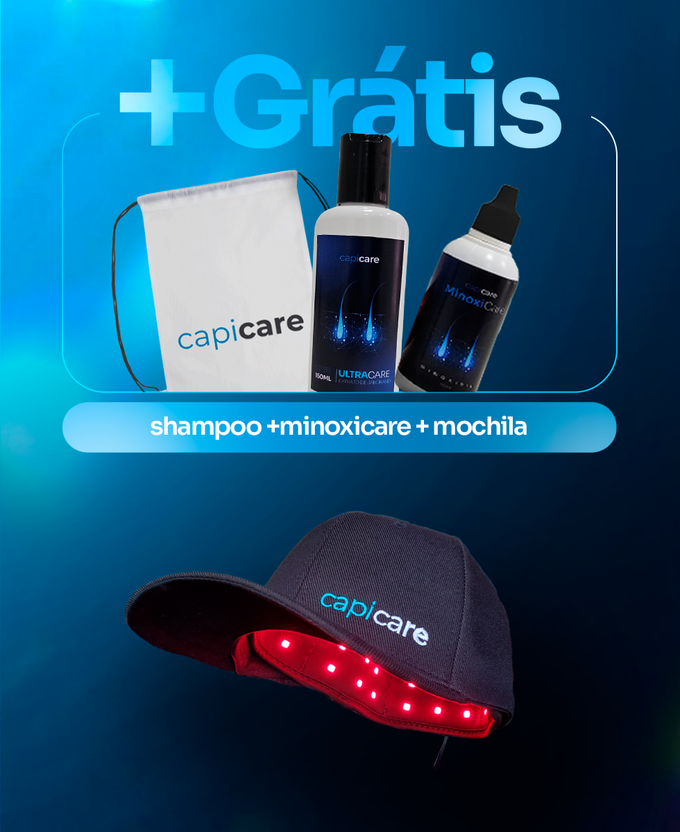 O boné CapiCare utiliza uma tecnologia de laser clinicamente testada e aprovada, chamada terapia a laser de baixo nível, que conta com 96 LEDs de luzes vermelho e infravermelho para combater a queda e estimular o crescimento do cabelo.